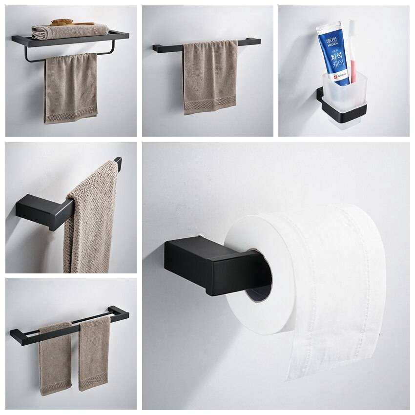 Matte Black 304 Stainless Steel Bathroom Hardware Set Robe Hook